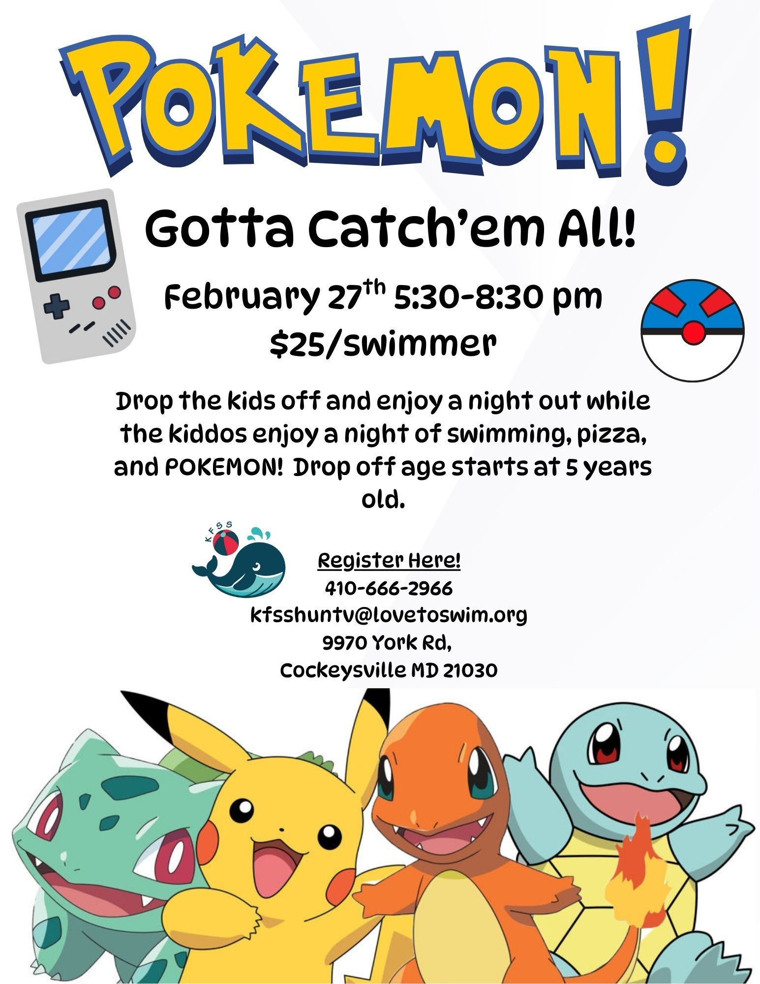 - Event includes swimming, pizza, snacks and a craft!