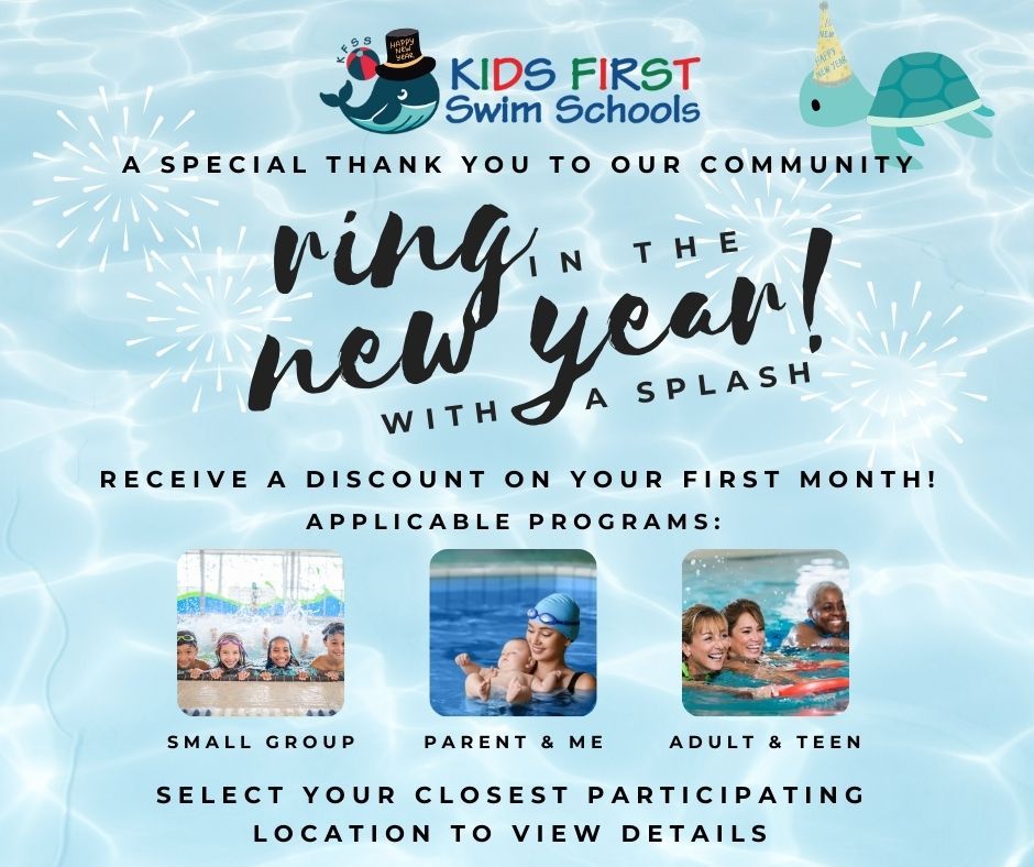 Sign up for swim lessons now through end of January and receive a % off tuition and membership fee (if applicable), PLUS free Family Swim for your first month of group lessons!
