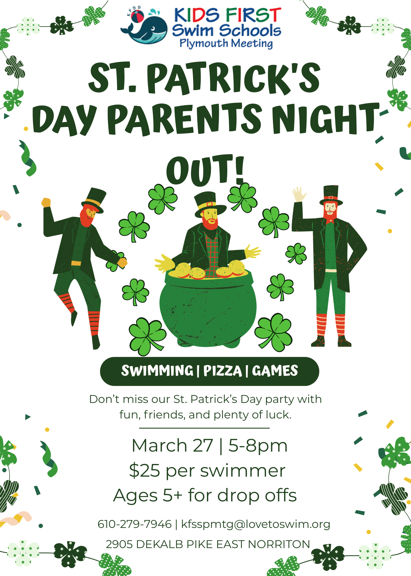 - Event includes swimming, pizza, snacks and a craft!